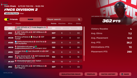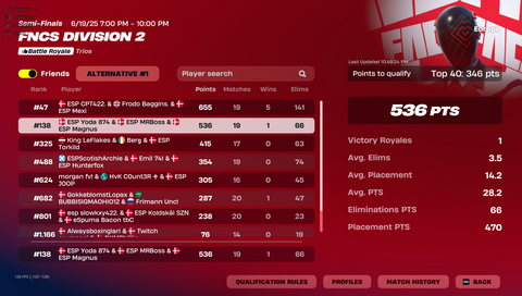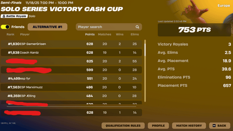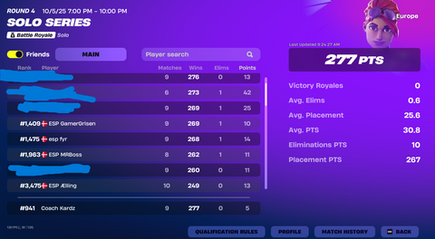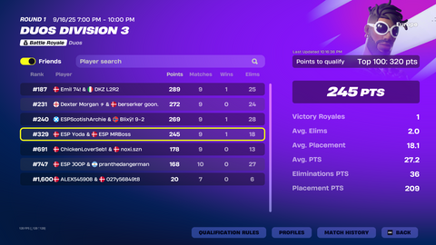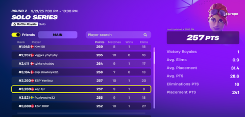 Se de seneste placeringer i solo