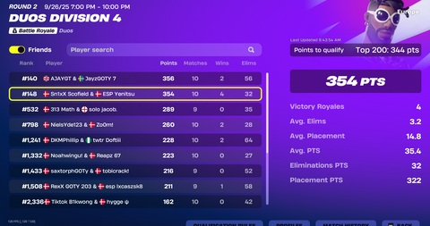 Se de seneste placeringer i duo